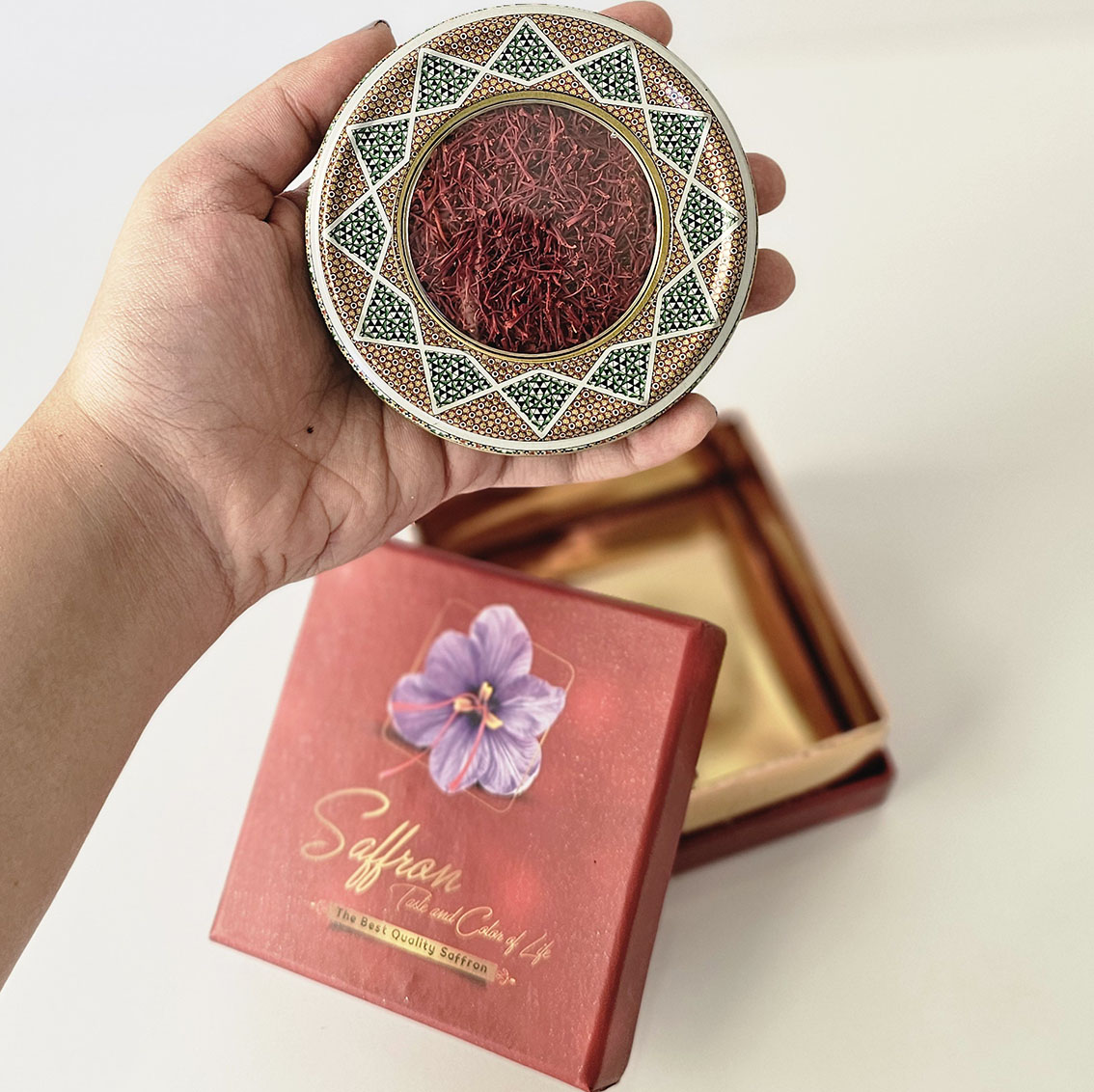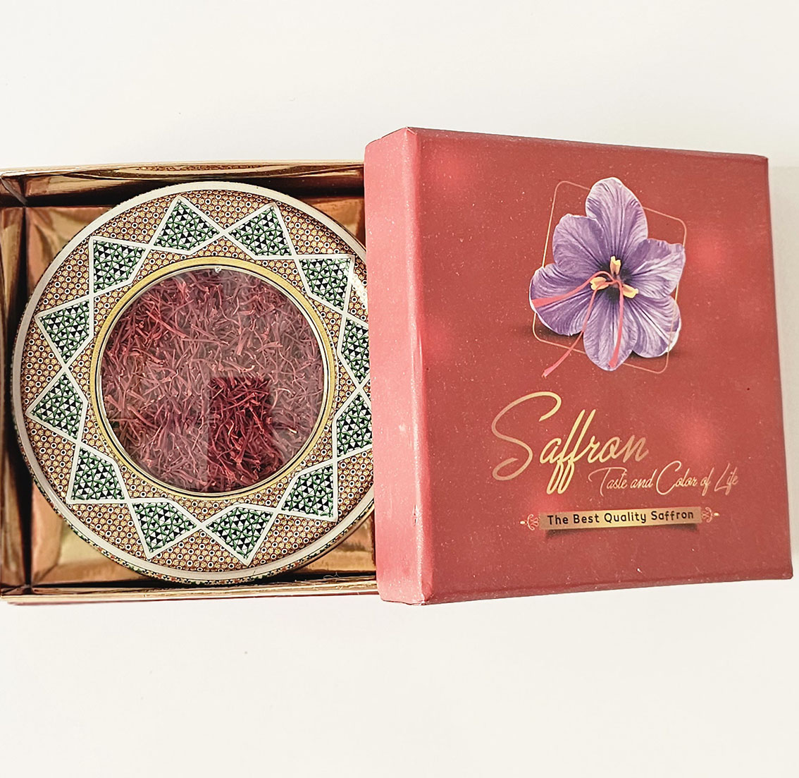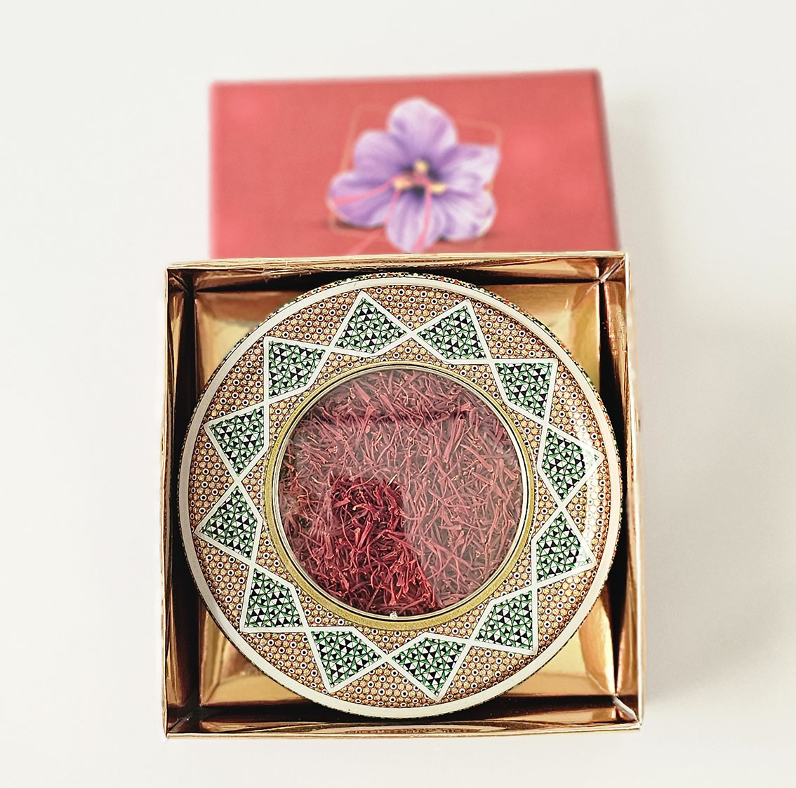 زعفران سرگل بیرجند 3 مثقالی در هارد باکس ظرف خاتم