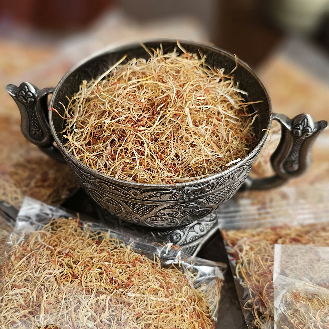 لطفا ریشه زعفران را در ظرف دمنوش دم کنید بعد به همراه یک عدد غنچه گل محمدی و نبات میل کنید