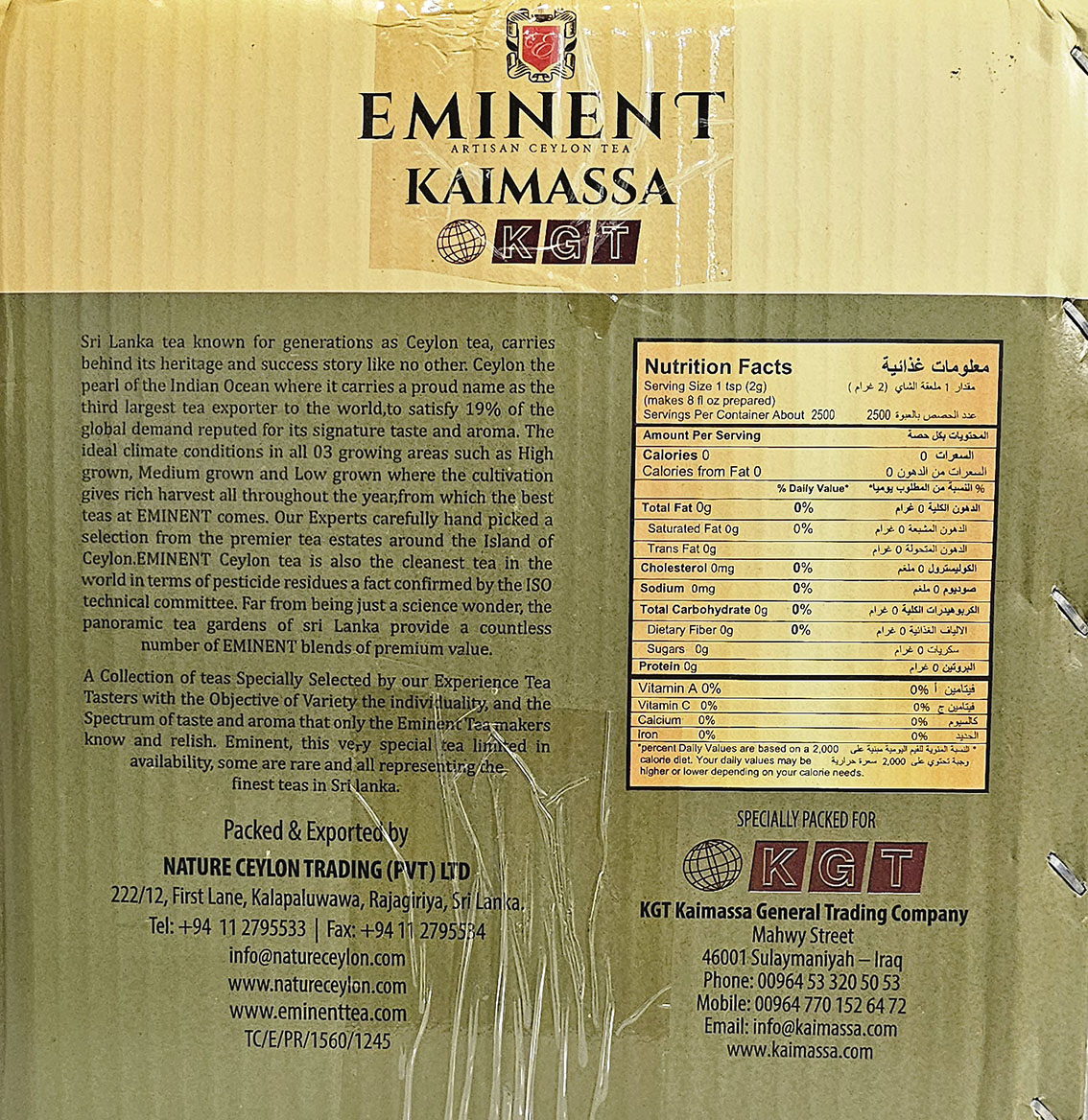 اصطلاحات Tippy و Barooti در چای بیشتر به نوع برگ و درجهبندی اشاره دارند:🔹 TippyTip در چای یعنی همان جوانههای نرم و طلاییرنگ برگ چای که هنگام خشک شدن حالت روشنتر یا طلایی پیدا میکنند. وقتی روی بسته نوشته شده Tippy یعنی در ترکیب این چای، مقدار قابل توجهی از همین جوانههای ظریف وجود دارد، درنتیجه؛ چای عطر بیشتر، طعم ملایمتر و کیفیت بالاتری دارد.🔹 Barooti (یا Barooti/BP)از واژهی Barooti یا در اصطلاح بینالمللی BOP = Broken Orange Pekoe آمده است، یعنی چای از برگهای شکسته و خردشده (نه پودر و نه برگ کامل) تشکیل شده است. این سبک خرد کردن باعث میشود چای زودتر دم بکشد و رنگ و غلظت بیشتری به آب بدهد. به همین خاطر، Tippy Barooti یعنی چای سیاهی که هم برگهای شکسته دارد برای دمکشی سریع و غلظت، و هم جوانههای طلایی برای عطر و کیفیت بالا.چای Eminent Tippy Barooti یک چای سیاه ویژه از سریلانکاست که با کیفیت و طعمی اصیل شناخته میشود.